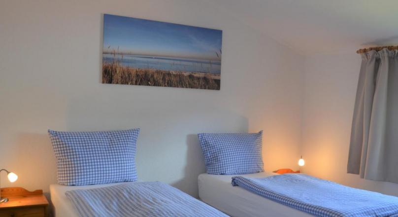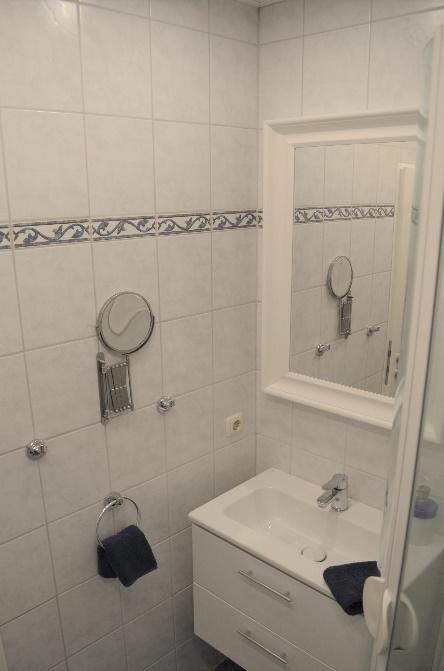 In dem Schlafbereich befindet sich ein Boxpsingbett. Die neue Küche besteht aus einem 4-Flammen-Cerankochfeld, Backofen, Umlufthaube, Kühlschrank, Geschirrspüler, Kaffeemaschine, Wasserkocher und Toaster. Der Esstisch bietet Platz für 4 Personen. Das separate Schlafzimmer besteht aus 2 Boxspringbetten mit einem Kleiderschrank. Zu dieser Wohnung gehört ein Duschbad mit WC.