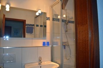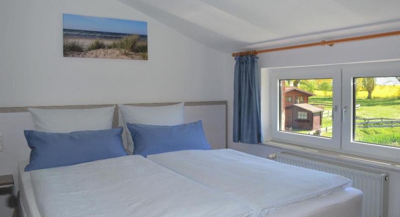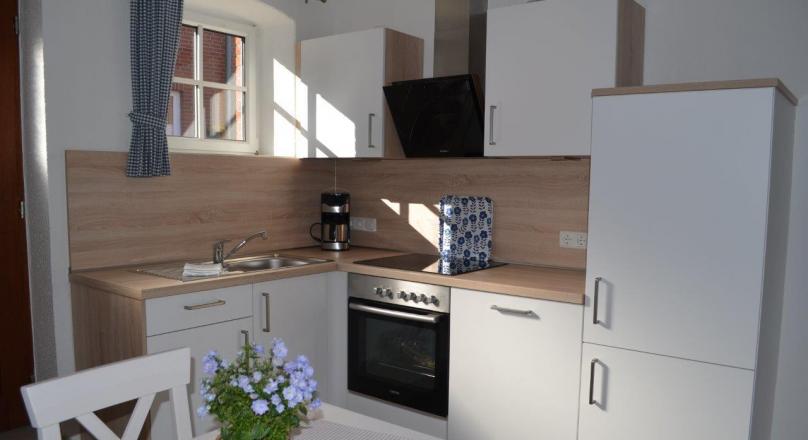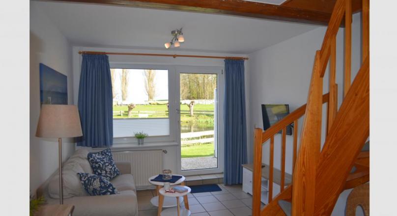 Die freundliche Ferienwohnung liegt nah am eingezäunten Teich und ist für 2 - 4 Personen ausgelegt. Sie erstreckt sich über zwei Etagen und bietet mit der Terrasse einen schönen Blick auf den Teich. Der kombinierte Wohn- und Essbereich ist ausgestattet mit einem Esstisch für bis zu 5 Personen, sowie einer Couchecke mit Sessel. Die neue Küche bietet ein 4-Flammen-Cerankochfeld, Umlufthaube, Backofen, Kühlschrank mit Gefrierfach, Geschirrspüler, Kaffeemaschine, Wasserkocher und Toaster. Das Schlafzimmer ist mit Boxspringbett und einen Kleiderschrank ausgestattet. Ein separates Kinderzimmer mit Etagenbett und kleinem Kleiderschrank befindet sich gleich nebenan. Die Ferienwohnung verfügt über ein Duschbad mit WC.