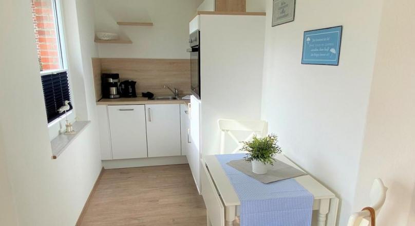 Das idyllische Appartement mit Teichblick ist ein Einraum-Appartement ist für 1-2 Personen ausgelegt. Es liegt ebenerdig mit Terrasse und Blick auf den Teich. Die neue Küche ist ausgestattet mit einem Kühlschrank, 2-Flammen-Cerankochfeld, Backofen, Umlufthaube, Geschirrspüler, Toaster, Wasserkocher, Kaffeemaschine etc. Die Wohnung verfügt über Duschbad mit WC und barrierefreie Dusche . Der helle Wohn- und Schlafbereich besteht aus einem Doppelbett, einer Sitzecke mit 2 Sesseln und einem Esstisch für 2 Personen.